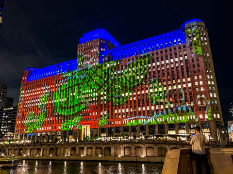 In July 2025, ORA – The Limits of the Planet came to life on the monumental façade of theMART, Chicago’s iconic riverfront building.